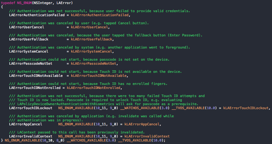 Error Domain=com.apple.LocalAuthentication Code=-7 “No fingers are enrolled with Touch ID.”