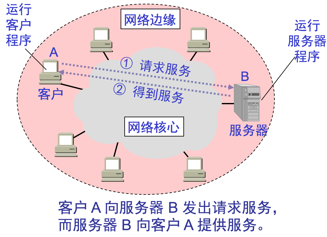 边缘部分是由所有连接在因特网上的主机组成,这部分是用户直接使用的,用来进行通信(传送数据、音频或视频)和资源共享。在网络边缘的端系统中运行的程序之间的通信方式通常可划分为两大类: