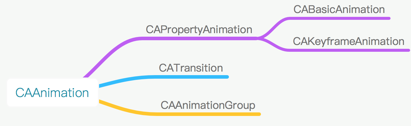 CAPropertyAnimation是CAAnimation的子类,但是不能直接使用,要想创建动画对象,应该使用它的两个子类:CABasicAnimation和CAKeyframeAnimation