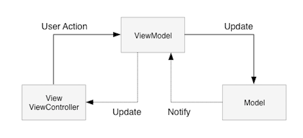 ViewModel 能主动调用对 Model 做更改,也能在 Model 更新的时候对自身进行调整,然后通过 View 和 ViewModel 之间的绑定,对 View 也进行对应的更新。它的职责就是作为一个表现视图显示自身所需数据的静态模型;它也有收集, 解释和转换那些数据的责任,这留给了 view (controller) 一个更加清晰明确的任务: 呈现由 ViewModel 提供的数据。