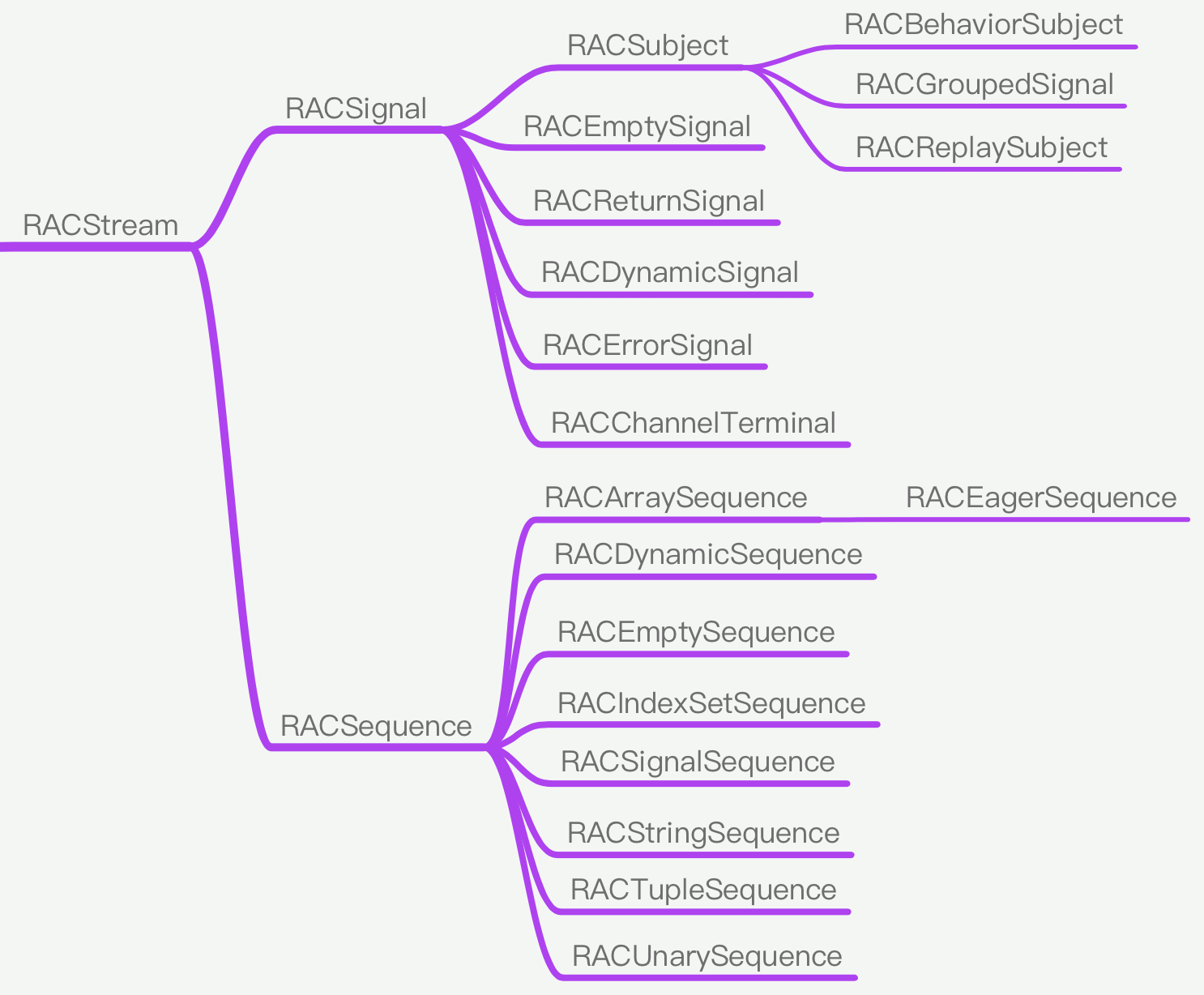 RACStream 是一个抽象类,通常情况下,我们并不会去实例化它,而是直接使用它的两个子类 RACSignal 和 RACSequence