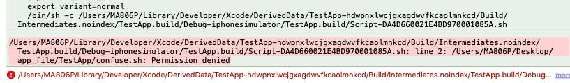 需要切换到工程目录下,输入命令行 chmod 755 confuse.sh 给我们的脚本本间授权