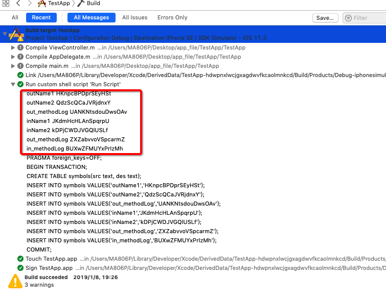 编译项目成功后,在工程目录下面脚本生成了 codeObfuscation.h 文件