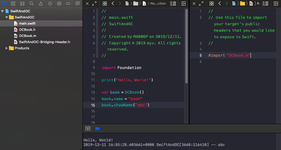 两种情况,OC 中调用 Swift 的情况,和 Swift 中调用 OC 的情况。本文是在当前最新的环境下的操作,Swift 5、Xcode 11.3。