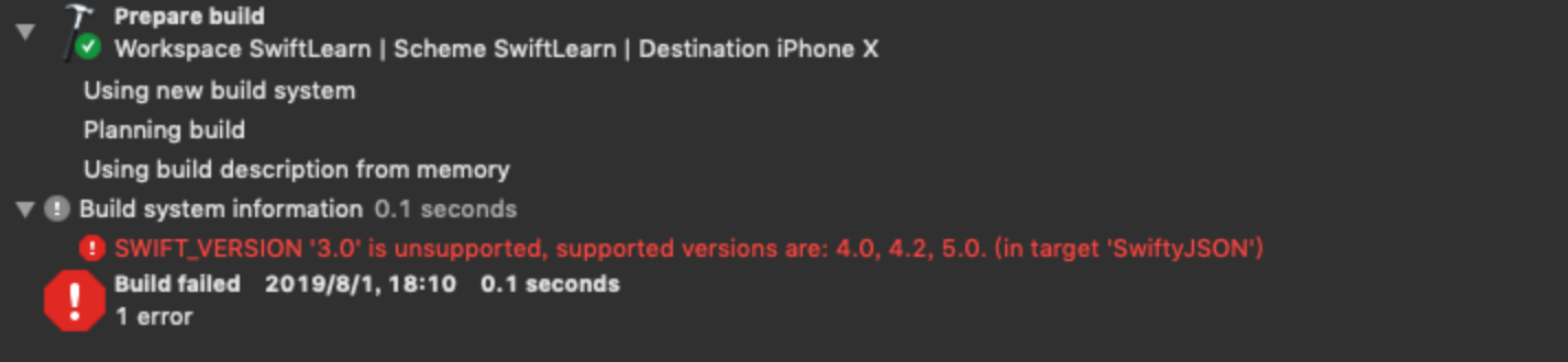 在从 Swift 低版本升级的时候,可能会报错: