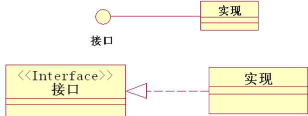实现关系,是一种类与接口的关系,表示类是接口所有特征和行为的实现。